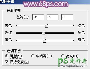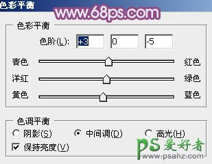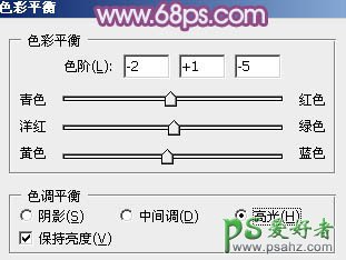 4、创建色彩平衡调整图层,对阴影、中间调、高光进行调整,参数设置如图13 - 15,效果如图16。这一步同样给图片增加暖色。
