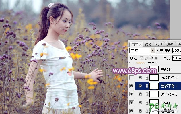 photoshop给野花丛中的花仙少女调出韩系暖色调