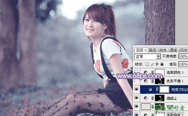 7、创建亮度/对比度调整图层,适当增加对比度,参数设置如图17,确定后按Ctrl + Alt + G 创建剪贴蒙版,效果如图18。