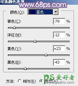 8、创建可选颜色调整图层,对红、蓝、洋红、白进行调整,参数设置如图19 - 22,效果如图23。这一步把图片中的各种颜色调淡。