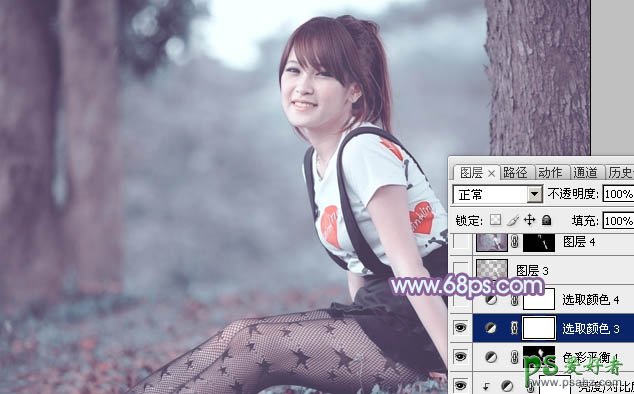 巧用ps通道替换给黑网丝袜少女外拍写真照调出冷调蓝紫色