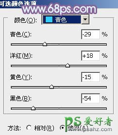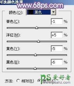 9、创建可选颜色调整图层,对青、洋红、黑进行调整,参数设置如图24 - 26,效果如图27。这一步主要把图片中的青色调淡。