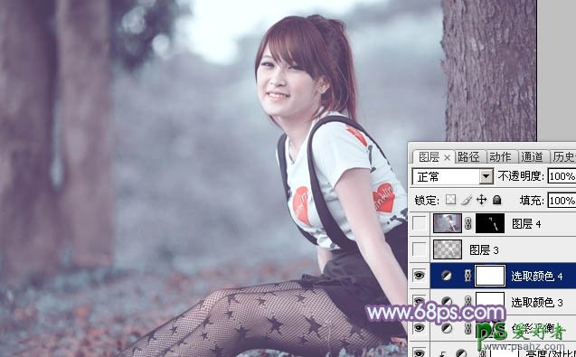 巧用ps通道替换给黑网丝袜少女外拍写真照调出冷调蓝紫色