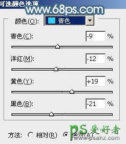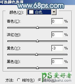 4、创建可选颜色调整图层,对青、蓝、白进行调整,参数设置如图8 - 10,效果如图11。这一步主要把图片中的青色调淡。