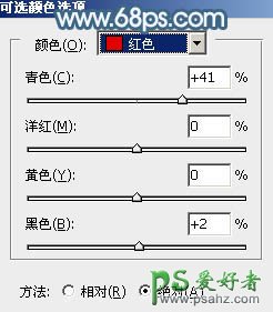 6、创建可选颜色调整图层,对红,黑进行调整,参数设置如图13,14,效果如图15。这一步适当减少图片中的红色,并微调暗部颜色。