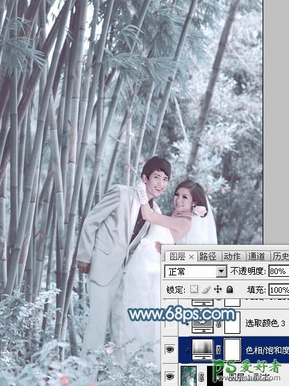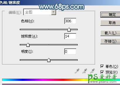 8、创建色相/饱和度调整图层,先勾选“着色”选项,然后设置参数,如图17。确定后按Ctrl + Alt + G 创建剪贴蒙版,再把图层不透明度改为:80%,效果如图18。