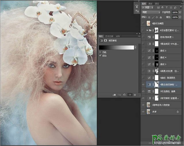 4、设置渐变映射,模式为明度,去灰加对比度,添加蒙板用画笔擦掉过暗的地方。