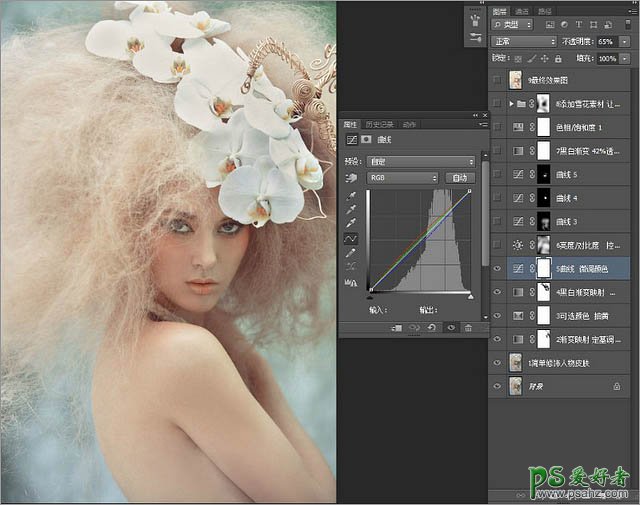 5、使用曲线微调颜色,在调整时需要留意暗部和亮部的细节。