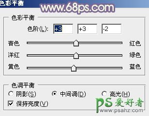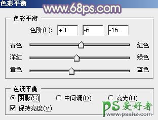 13、创建色彩平衡调整图层,对阴影、中间调、高光进行调整,参数设置如图44 - 46,确定后图层图层不透明度改为:50%,效果如图47。这一步微调图片的主色。