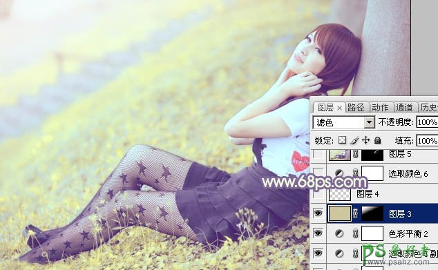14、新建一个图层填充淡黄色:#CEC6A1,混合模式改为“滤色”,按住Alt键添加图层蒙版,用白色画笔把左上角部分擦出来,给图片增加一点高光,效果如下图。