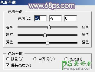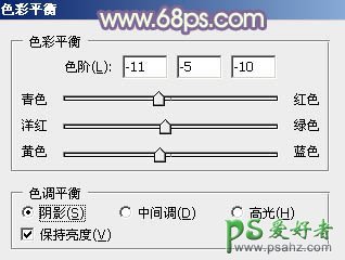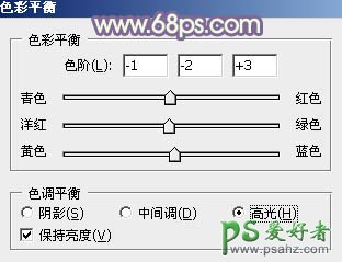 5、创建色彩平衡调整图层,对阴影、中间调、高光进行调整,参数设置如图17 - 19,效果如图20。这一步微调图片暗部及高光部分的颜色。