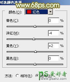 10、创建可选颜色调整图层,对红色进行调整,参数及效果如下图。这一步微调图片中的红色。