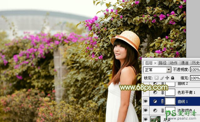 Ps韩式调色教程:给花园里的少女外拍照片调出韩系黄褐色