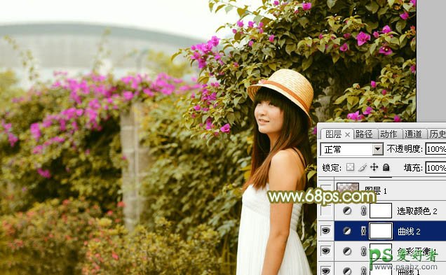 Ps韩式调色教程:给花园里的少女外拍照片调出韩系黄褐色