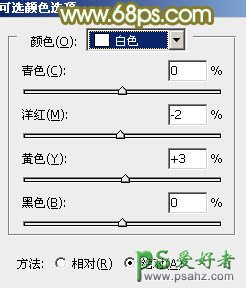 5、创建可选颜色调整图层,对红、黄、白进行调整,参数设置如图16 - 18,效果如图19。这一步微调图片中的暖色。