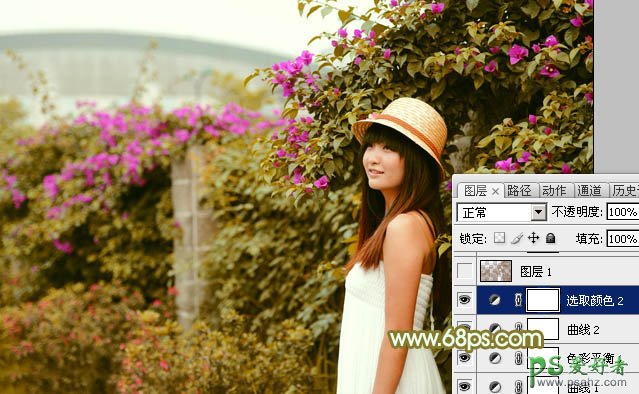 Ps韩式调色教程:给花园里的少女外拍照片调出韩系黄褐色