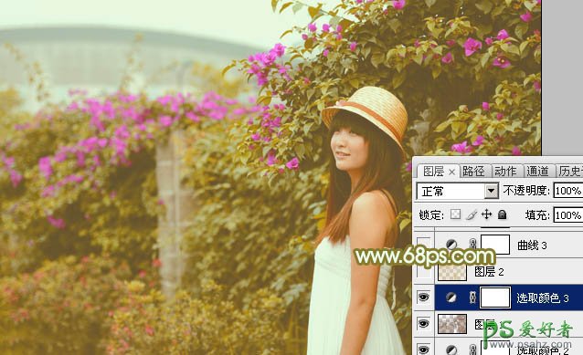 Ps韩式调色教程:给花园里的少女外拍照片调出韩系黄褐色