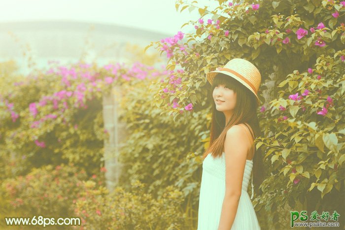 Ps韩式调色教程:给花园里的少女外拍照片调出韩系黄褐色