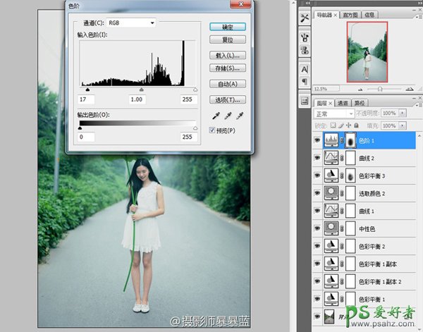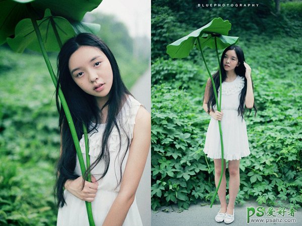 PS调色教程:给清新的文艺少女照片调出绿色优雅气质效果