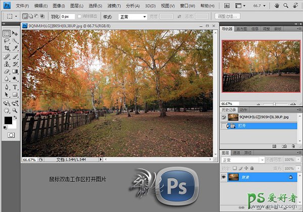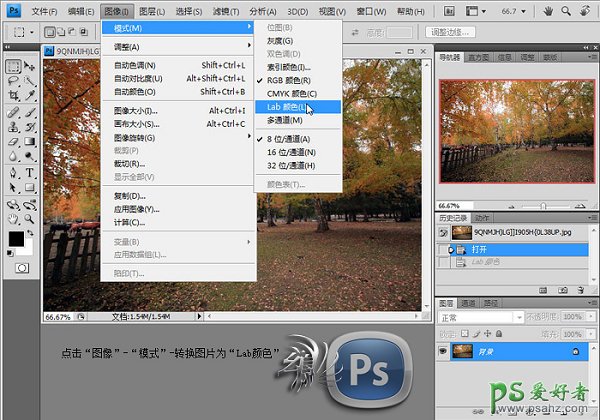 今天我们来学习一篇PS后期调色教程:给漂亮的秋景风光照片调出火红的色彩,风景照片调色,秋景照片后期调色实例教程,风光照片处理。 效果图 原图 一.首先鼠标双击工作区打开图片。 简单实用的风光调色法 二.点击“图像”——“模式”——转换图片为