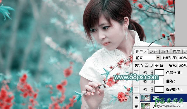 2、创建可选颜色调整图层,对红、青、白、黑进行调整,参数设置如图2 - 5,效果如图6。这一步主要把图片中的青色及红色调淡。