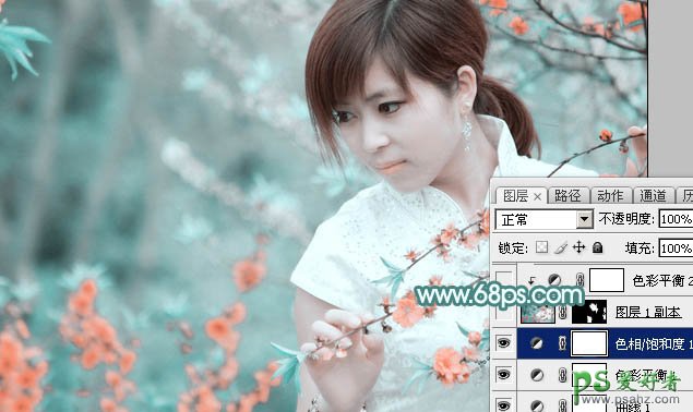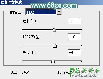 5、创建色相/饱和度调整图层,对红色进行调整,参数及效果如下图。这一步把图片中的红色调淡。