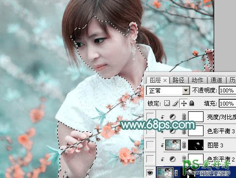 6、把底部的“图层1”复制一层,按Ctrl + Shift + ] 置顶,按住Alt键添加图层蒙版,用白色画笔把人物脸部及肤色部分擦出来,如下图。