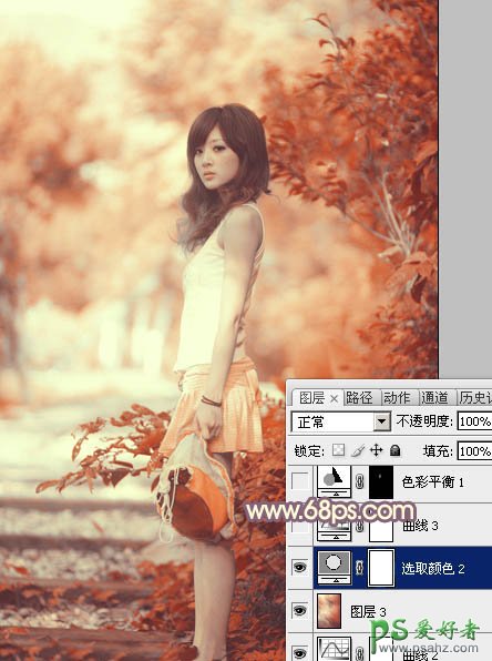 ps流行色彩美女照片调色教程:给户外春季人像调出秋天唯美暖...
