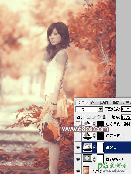 ps流行色彩美女照片调色教程:给户外春季人像调出秋天唯美暖...