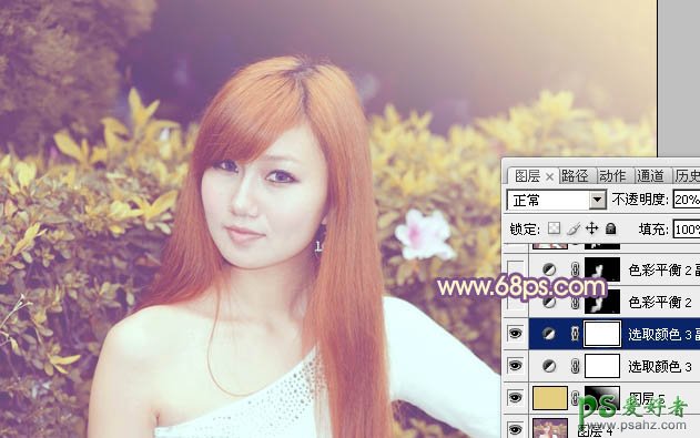 12、按Ctrl + J 把当前可选颜色调整图层复制一层,不透明度改为:20%,效果如下图。