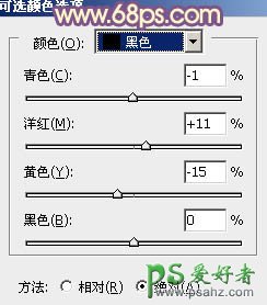 1、打开素材图片,创建可选颜色调整图层,对黄、绿、黑进行调整,参数设置如图1 - 3,效果如图4。这一步给背景增加黄褐色。