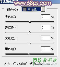 3、创建可选颜色调整图层,对黄,中性色进行调整,参数设置如图10,11,效果如图12。这一步给图片增加暖色。