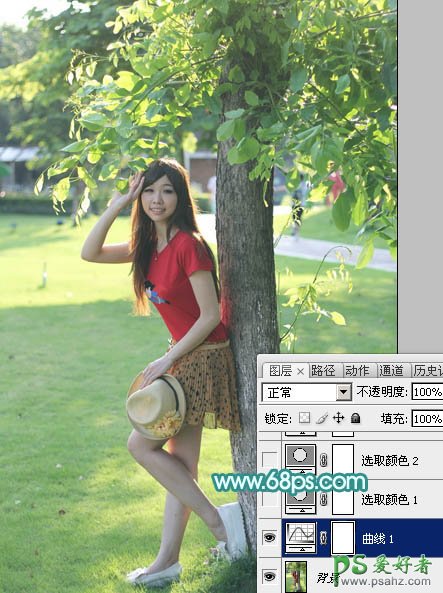 Ps外景调色教程:给外景草地上漂亮女孩儿调出阳光色彩