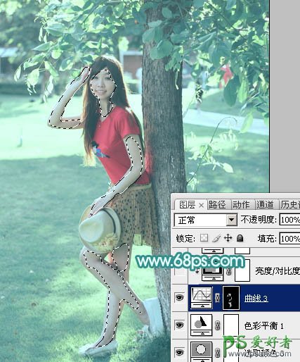 8、创建曲线调整图层,对RGB,红通道进行调整,参数设置如图24,25,确定后把蒙版填充黑色,用白色画笔把人物脸部及肤色部分擦出来,效果如图26。这一步把人物肤色部分稍微调亮。