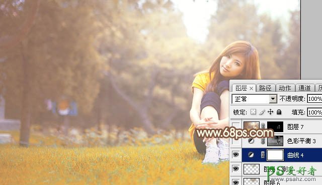 Ps外景调色教程:给外景草地上漂亮女孩儿调出阳光色彩