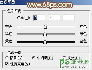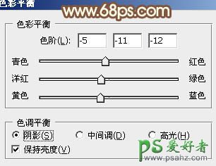 3、创建色彩平衡调整图层,对阴影、中间调、高光进行调整,参数设置如图10 - 12,效果如图13。这一步微调图片个层次的颜色。