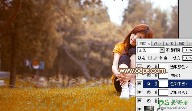 Ps外景调色教程:给外景草地上漂亮女孩儿调出阳光色彩