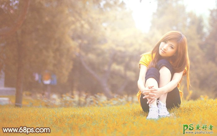 今天我们学习一篇Ps外景调色教程:给外景草地上漂亮女孩儿调出阳光色彩,美女外景调色实例教程,PS后期调色,PS调色,美女图片调色,清纯美女外景写真照调色教程,漂亮女孩儿艺术照外景调色实例学习,制作过程很简单,把图片中的绿色转为橙黄色,整体稍微调亮一点,暗部增加一些冷色即可。