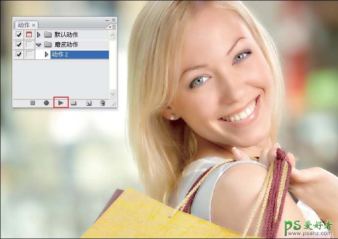 4、单击【播放】按钮,即开始磨皮动作。