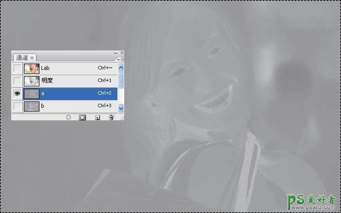8、单击b 通道,按Ctrl+V 键,粘贴a 通道。