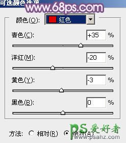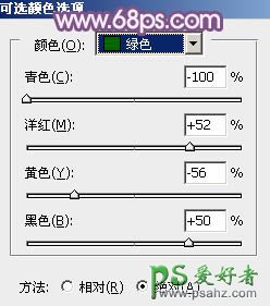 1、打开素材图片,创建可选颜色调整图层,对红、黄、绿进行调整,参数设置如图1 - 3,效果如图4。这一步主要把背景中的黄绿色转为较深的褐色。