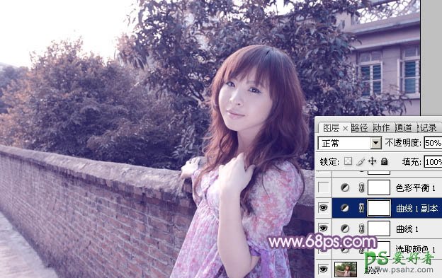 3、按Ctrl + J 把当前曲线调整图层复制一层,不透明度改为:50%,如下图。