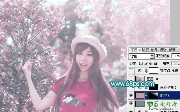 12、新建一个图层,盖印图层。简单给人物磨一下皮,用模糊工具把背景部分需要模糊的部分模糊处理。然后把整体柔化处理,再增加一点高光,效果如下图。