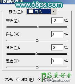 14、创建可选颜色调整图层,对白色进行调整,参数及效果如下图。这一步微调图片高光颜色。