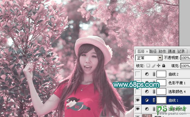PS非主流紫色图片调色:给外景迷情甜美少女调出紫色效果