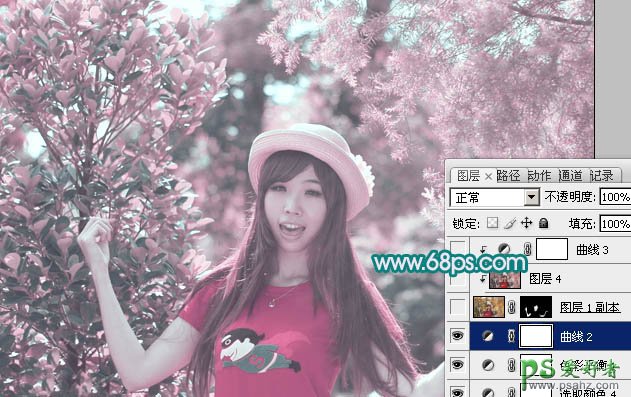 8、创建曲线调整图层,对RGB,红通道进行调整,参数设置如图21,22,效果如图23。这一步适当增加图片暗部及高光部分的亮度。