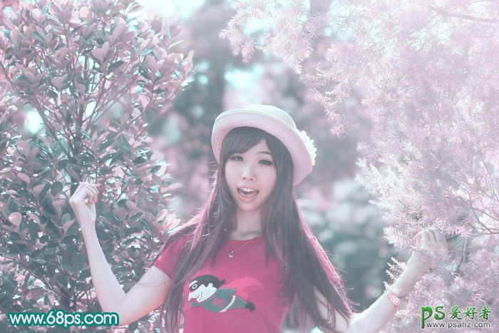 PS美女图片调色,PS调色教程:给可爱的甜美女孩儿生活照调出淡调青紫色,漂亮美女生活照调色,外景美女调色实例,调色技巧,前期需要给图片增加暖色,然后把图片转为青红双色图片,后期再把红色转为淡紫色,青色稍微调亮即可。