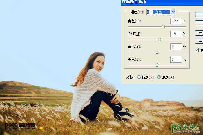 PS阳光小美女高清图片调色:给山坡上外拍小美女调出阳光色彩