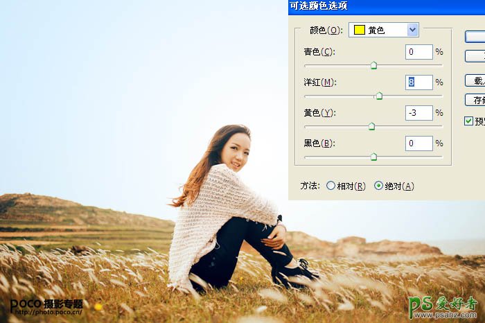 ps黄图片调色教程:给野花丛中的天使少女调出黄图片效果