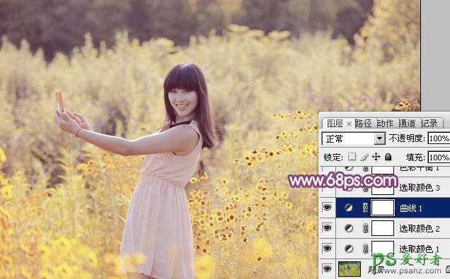 ps黄图片调色教程:给野花丛中的天使少女调出黄图片效果